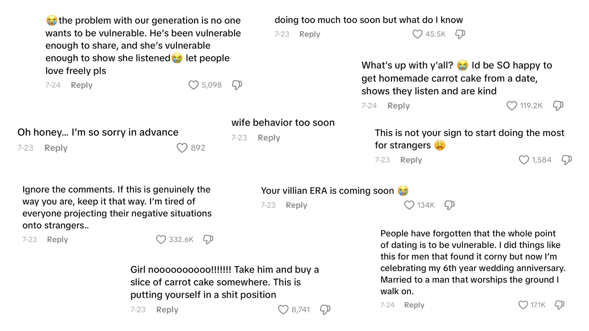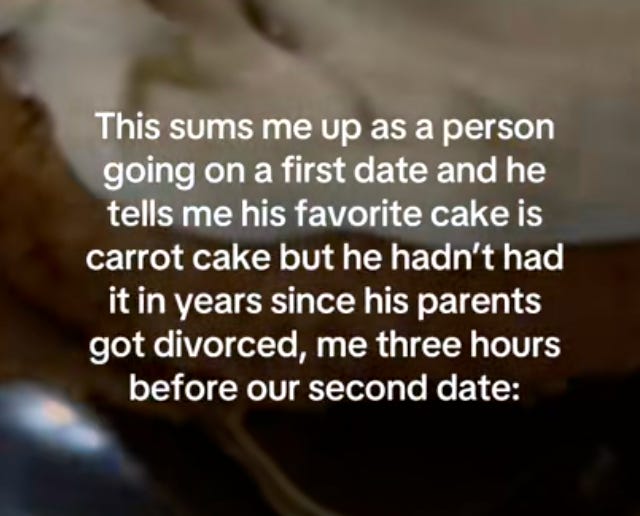 Last Monday, I was in a café scrolling through TikTok while waiting for my order when I came across this video of Prinny (@theprinnyway). In the video, she was baking a carrot cake to bring to the guy she was seeing on their second date. The text explains that her date hadn’t had carrot cake ever since his parents got divorced years ago, so she made one for him to give him a chance to experience it again. A kind gesture was all it was, but it sparked polarizing reactions from viewers.